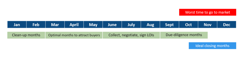 In our last Get Ready to Sell newsletter, we discussed the perfect time of year to sell your company, as in which months are best to go to market.