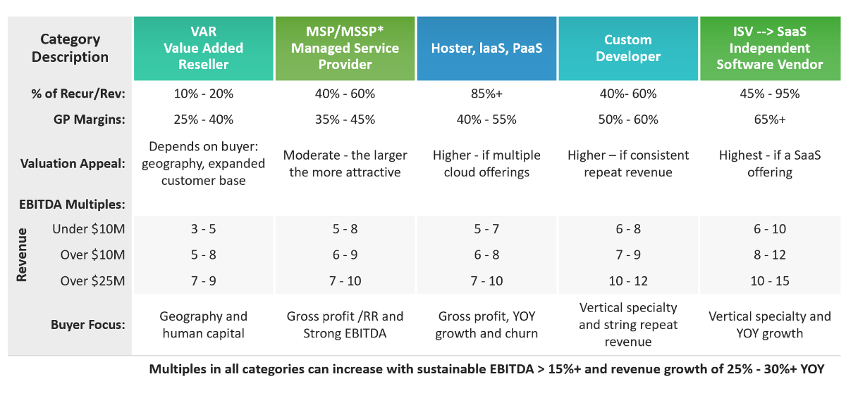 - Differences in valuations based on company type (MSP, VAR, etc.)